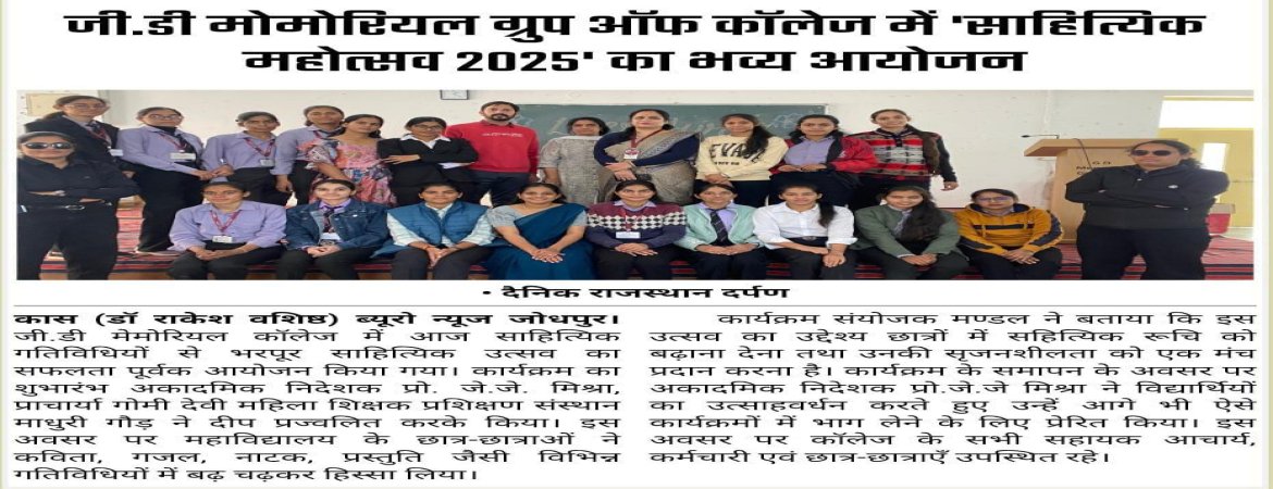 Read Moreगोमी देवी टी. टी. कॉलेज जोधपुर में साहित्यिक महोत्सव का भव...