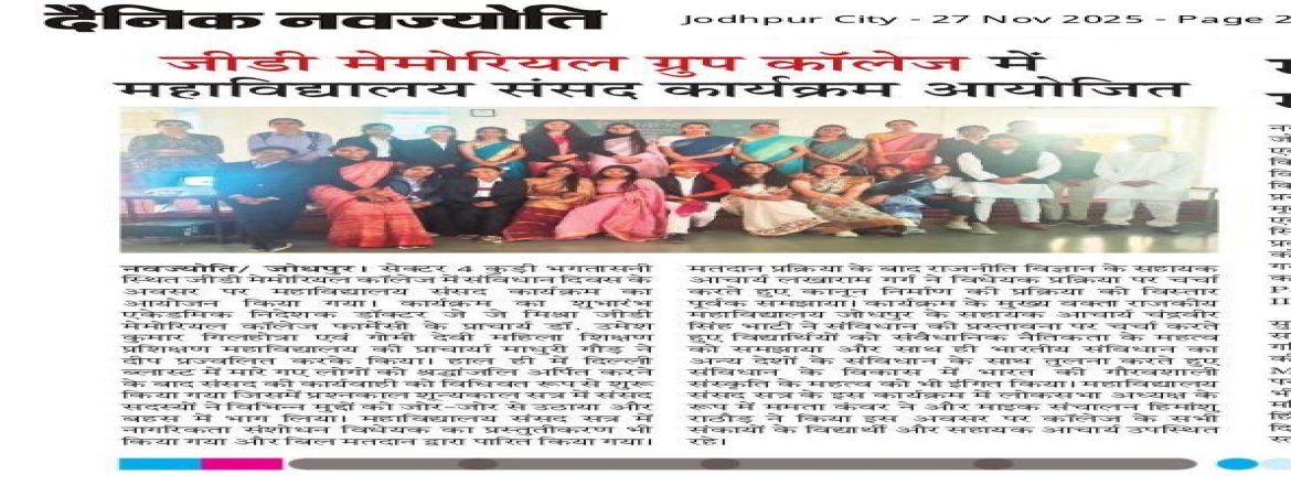 Grand Organization of College Parliament Program at Gomi Devi women T.T. college Jodhpur. On the occasion of Constitution Day, a grand College Parlia...