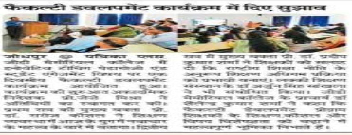 Read MoreA ONE-DAY FACULTY DEVELOPMENT programme on " INNOVATIVE TEACHING PEDAGOGY AND STUDENT'S ENGAGEMENT"* Organized by the G.D. Memorial Group of Colleges...
