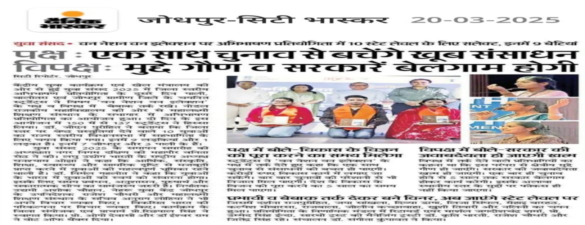 Read MoreLiza Singhal Delivers Powerful Speech on 75 Years of the Indian Constitution dated March 26, 2025 at State Youth Parliament Jodhpur: Liza Singhal fr...